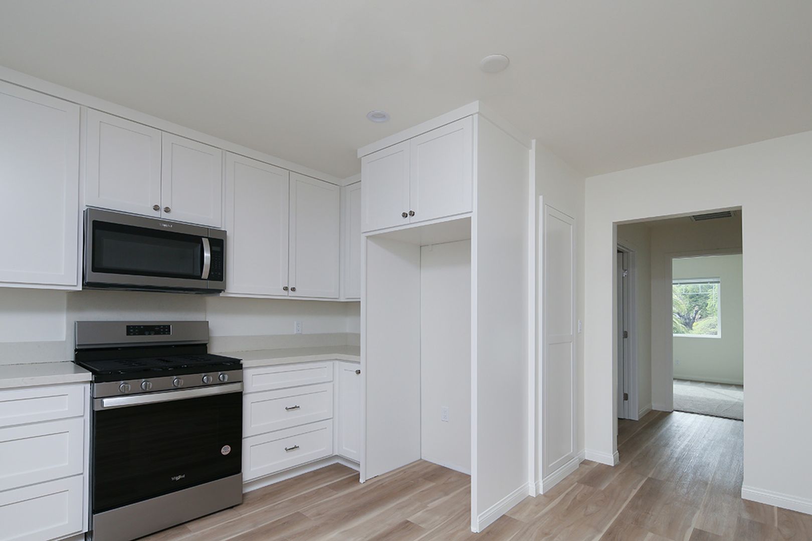 Appliances included are refrigerator, stainless steel stove/oven, microwave, dishwasher and washer/dryer