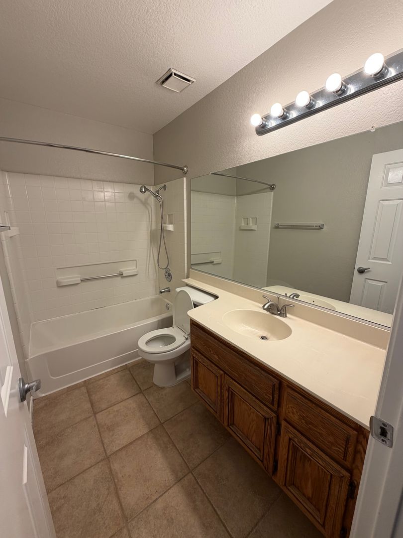 2-story, 2,200 sq. ft. 4bed/3bath home with 2-car garage. New flooring. French door entry. Window coverings. One bedroom and bath on first floor. Family room with fireplace. Kitchen with breakfast nook. Master bedroom with ceiling fan. Covered patio. Ideal location near top rated schools. No pets allowed.