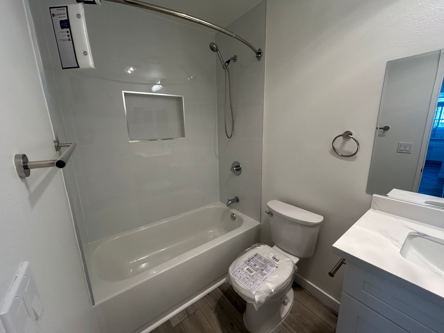 Introducing this completely remodeled 1-bedroom, 1-bathroom apartment located in the desirable area of Tujunga, CA. The home features a 3rd floor location with a balcony, and new energy efficient vinyl windows for comfort. The modern kitchen has new shaker style cabinets with Calacatta Breeze quartz countertops, brand-new stainless-steel stove, refrigerator and dishwasher. The bathroom has an all new bath tub and fixtures. The unit has newly installed and easily to maintain wood grained LVP flooring throughout the spacious living area. Wall AC and ceiling fans provide an easily controlled environment. An on-site parking space is included in this gated community with a shared community laundry room. Don't miss out on the opportunity to make this unit your new home. Contact us today to schedule a tour and experience the comfort and convenience this apartment has to offer.