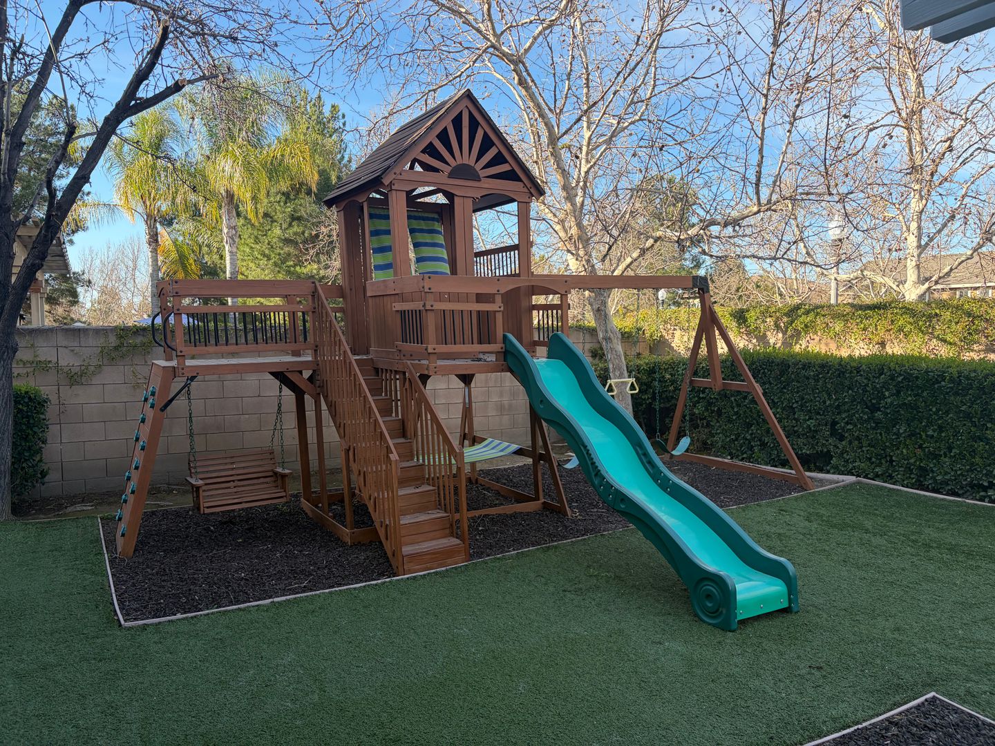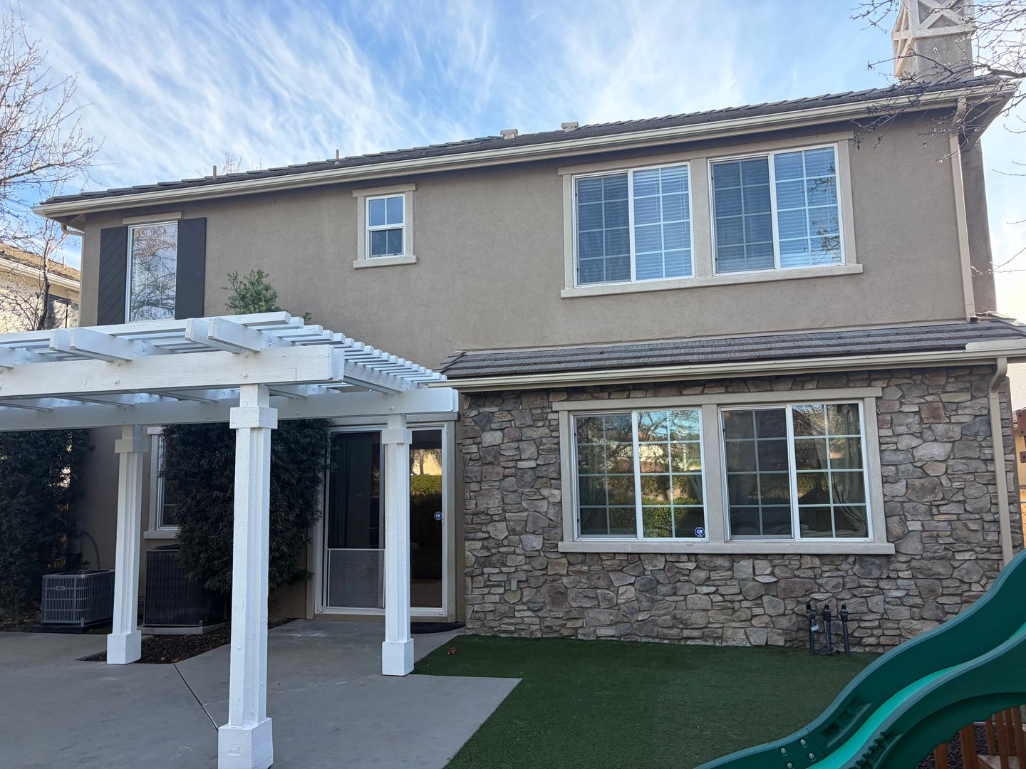 Beautiful former Model Home in the highly desirable S. Temecula community of Wolf Creek. This home features 4 bedrooms and 2 1/2 bathrooms. Beautiful refinished wood floors on the main level, and LVP flooring on the 2nd floor. A custom built-in entertainment center and stone fireplace with mantle in the family room. The kitchen features stained maple cabinets, a reverse osmosis system, stainless Kitchen Aid appliances, double convection ovens, a full backsplash, and Corian countertops. 9' ceilings throughout. A custom built-in cabinet with a wine rack in the formal dining room. Decorative windows in the formal dining room, at the staircase landing, and master bath. Large master bedroom and bath with 2 large walk-in closets with mirrored doors, dual vanities, separate tiled shower, and tub. Plenty of additional storage throughout. A separate laundry room with cabinets and a sink basin. A bright and open floor plan is great for entertaining which leads to the backyard. The entire home is hardwired for a security system. Blinds throughout the home. No neighbors behind you. Whole house surround sound. Tankless water heater, and a whole home filtration system. Attached is a spacious 3-car garage. with 2 HVAC units. Well-maintained and mature front yard landscaping with automatic sprinklers, gutters, attractive stonework on the exterior of the home, and a covered porch. The backyard has a trellis, a built-in bench with stonework, artificial turf, and a play structure. Close to Walking Trails, parks including Birdsall (26-acre sports park), Old Town Temecula, Wineries, Pechanga Resort and Casino, Freeway access, and Dining/Shopping.