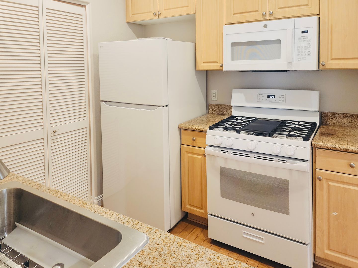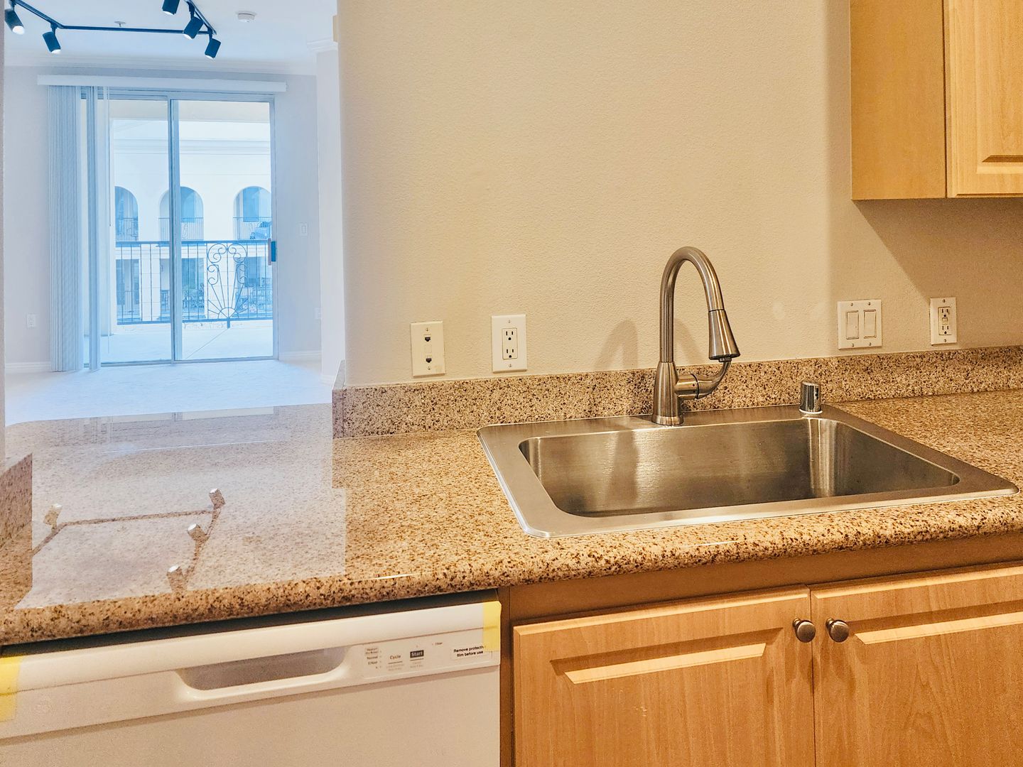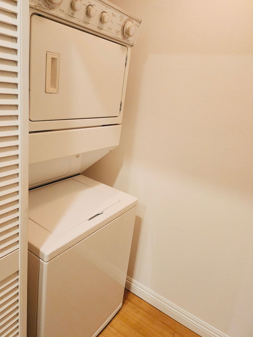 Located in the highly sought-after Watermarke Community of Irvine, this beautifully maintained 1 bedroom, 1 bathroom condo offers approximately 635 square feet of comfortable living space with an open-concept layout. The kitchen features granite countertops, ample cabinetry, breakfast bar seating, dishwasher, and wood-style flooring, and opens seamlessly to the spacious living and dining areas with plush carpeting and modern track lighting. The generously sized bedroom includes a walk-in closet and direct access to the full bathroom with granite vanity and shower/tub combination. Additional highlights include central heating and air conditioning, in-unit stackable washer and dryer, and a private balcony overlooking the peaceful community grounds. Residents enjoy access to resort-style amenities including multiple swimming pools, spa, fitness center, clubhouse, tennis courts, and indoor basketball court within a gated community ideally located near shopping, dining, major freeways, UC Irvine, and John Wayne Airport.