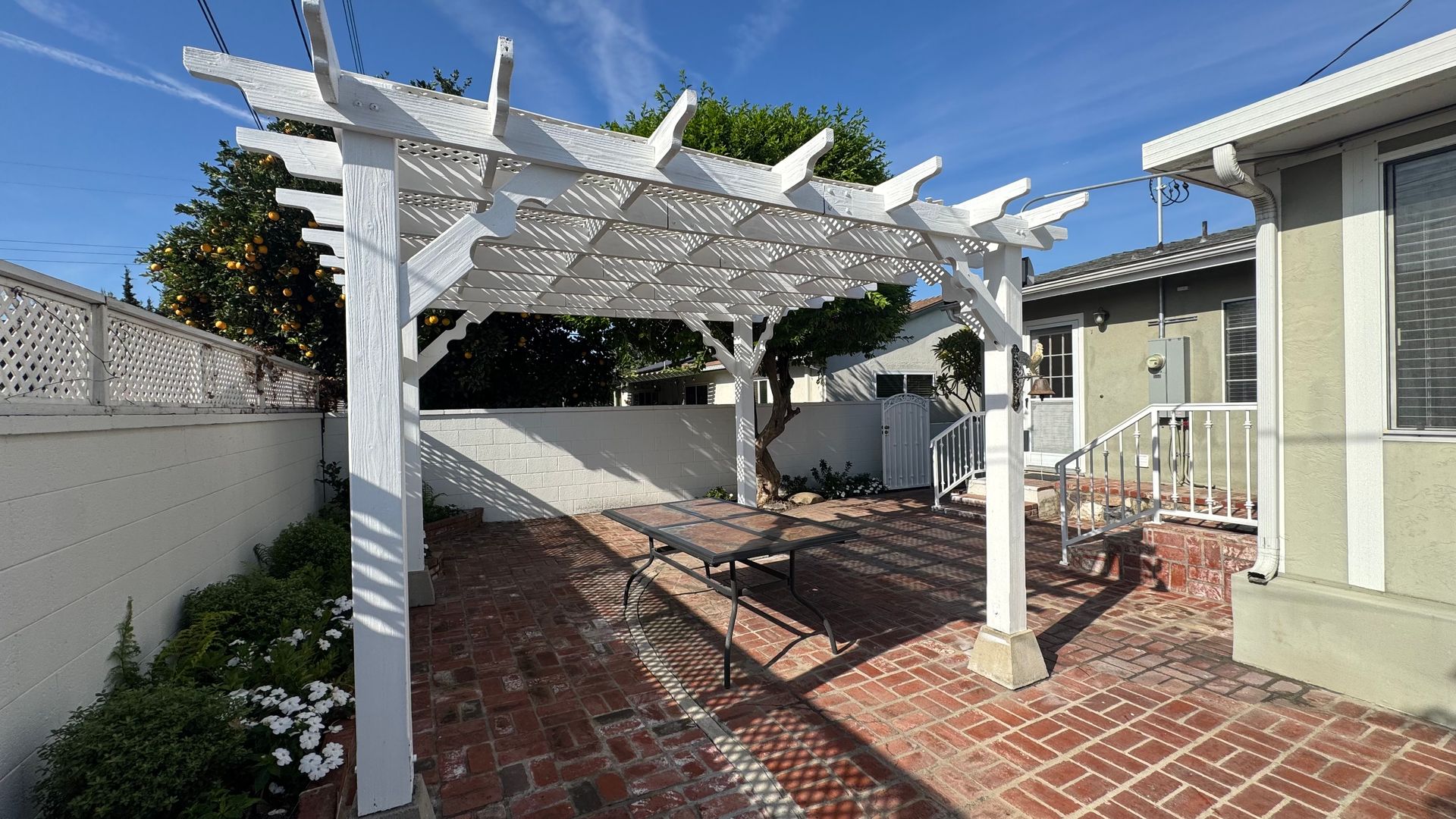 Entertainment-friendly backyard ideal for gatherings, outdoor dining, relaxation, or play