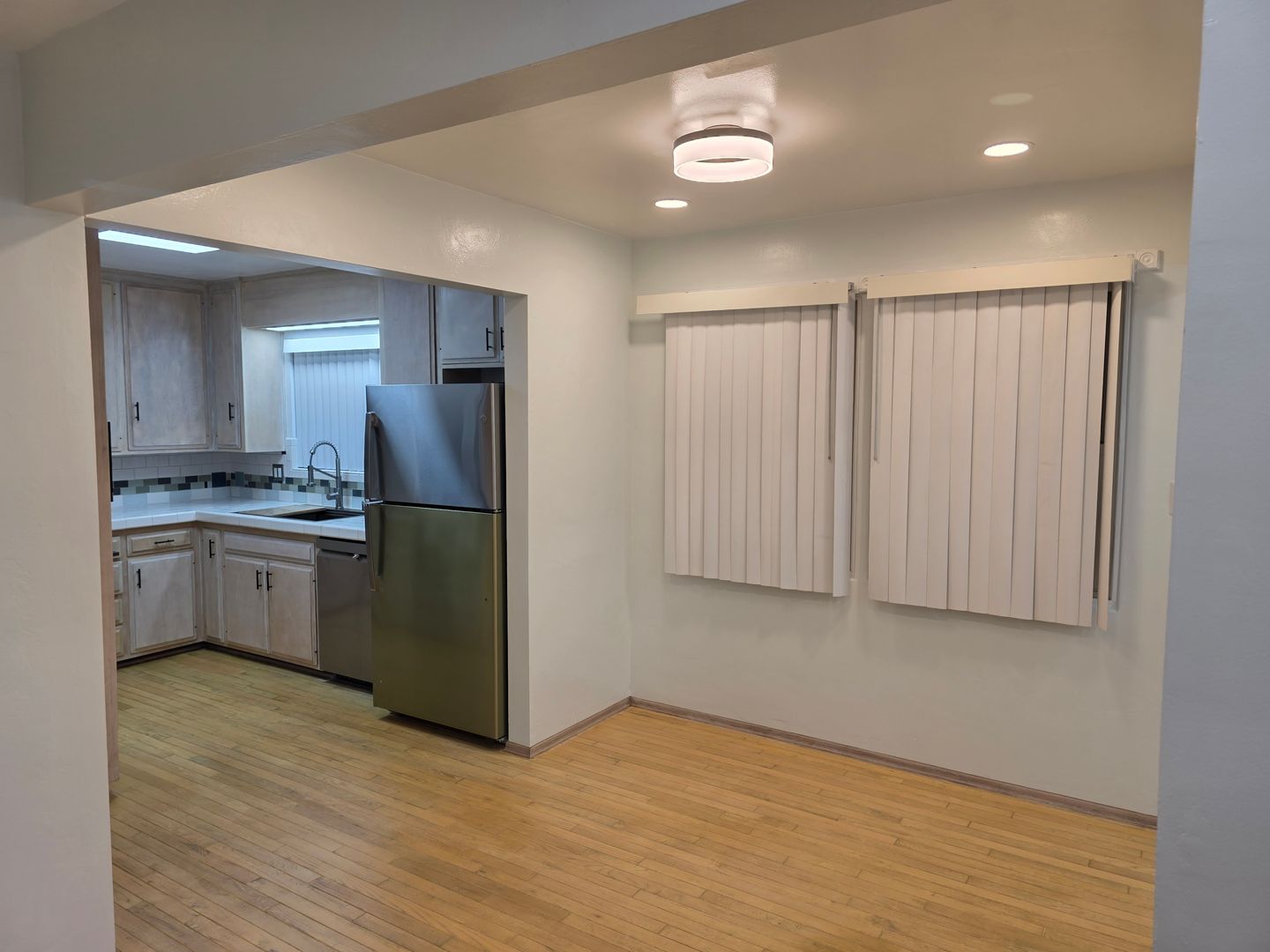 The modern kitchen features brand-new stainless steel appliances, while central A/C keeps the home cool and comfortable year-round.